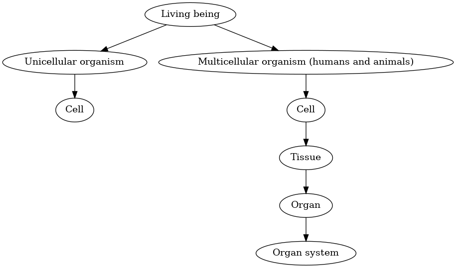 - Multicellular organism = many cells → tissues → organs → organ systems → organism.